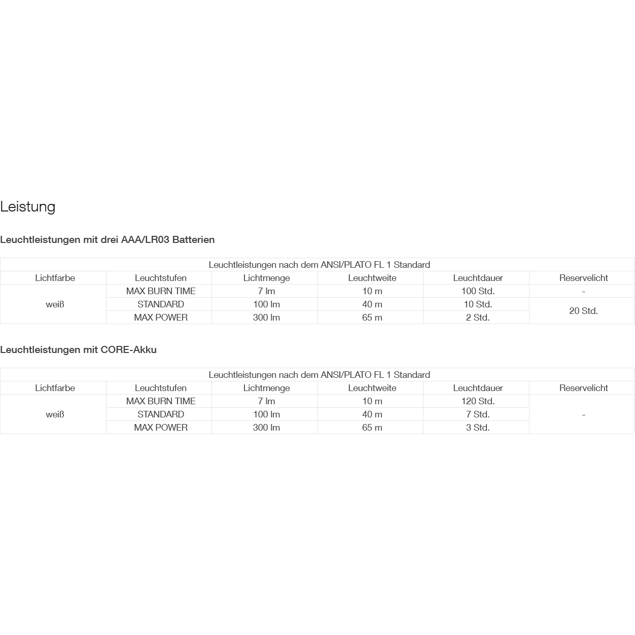 - Lichtsterkte: 300 lumen (ANSI/PLATO FL 1)